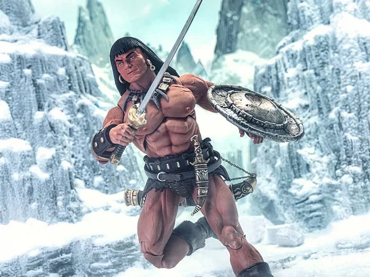 Con una articulación de primera calidad y un esculpido realista, esta figura coleccionable da vida a la icónica visión de Frank Frazetta del guerrero de Robert E. Howard. El cimmerio viene armado con dos cabezas intercambiables, varios pares de manos y un temible arsenal de armas.