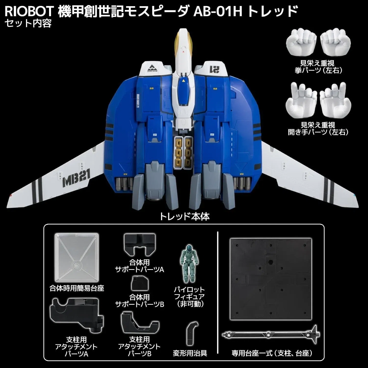 Continuando con la línea Genesis Climber Mospeada, Sentinel presenta el RIOBOT AB-01H Tread. Con 30 cm de altura, Tread cuenta con piezas de DieCast Metal para mayor durabilidad y se transforma fácilmente entre las formas de luchador, buzo y soldado.