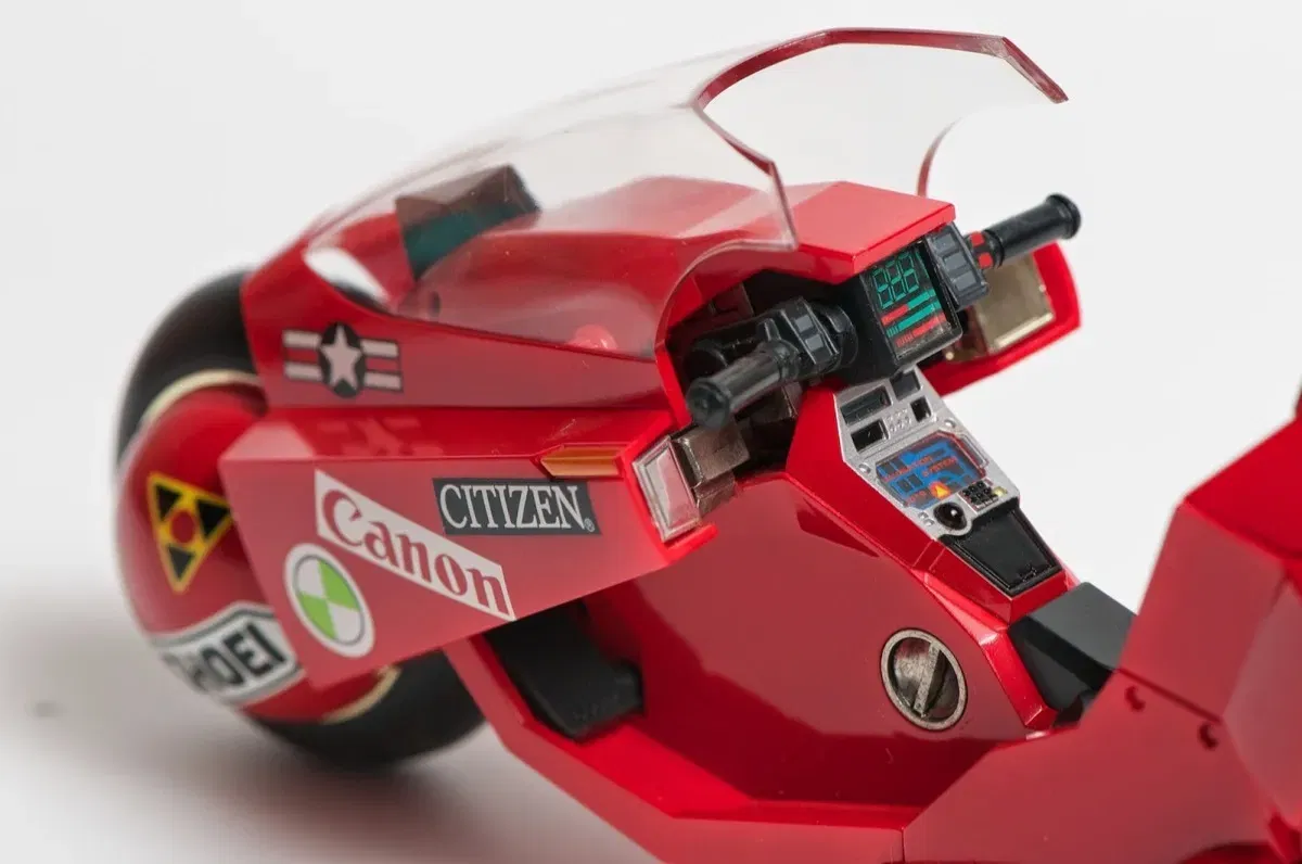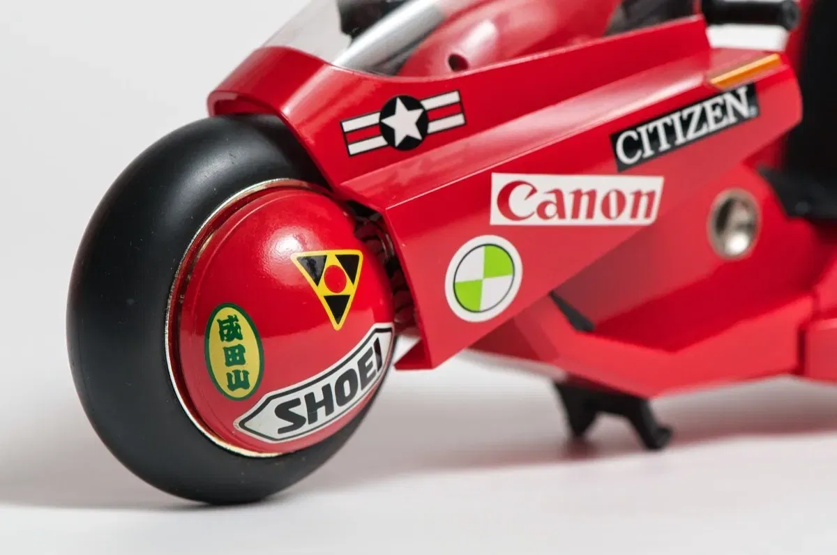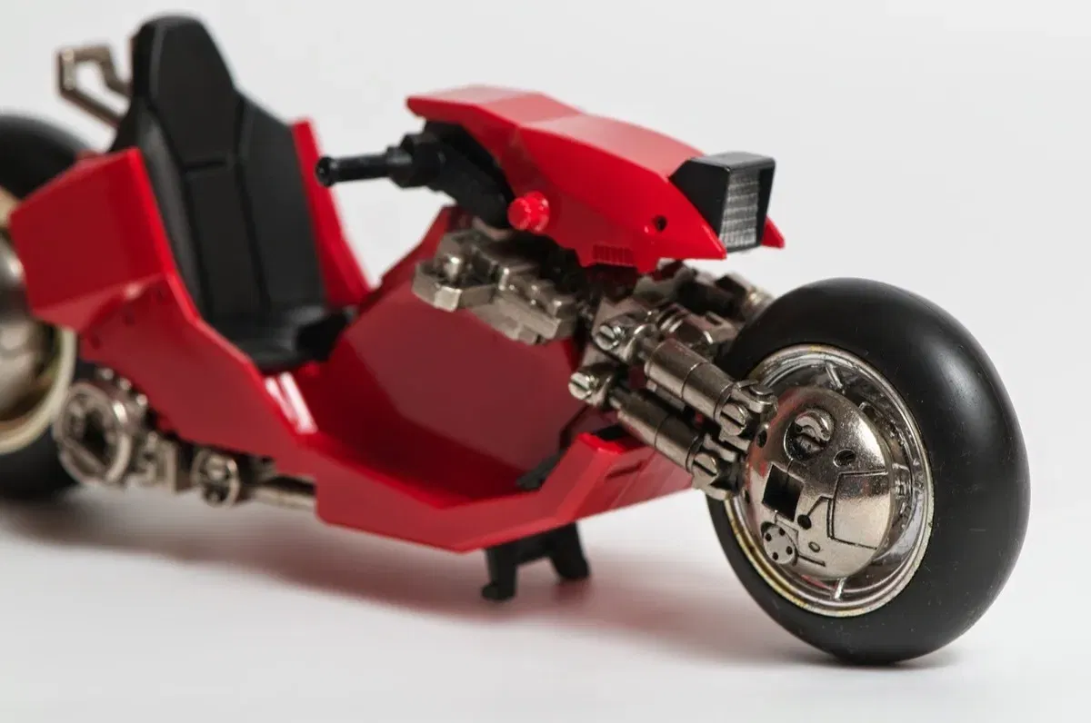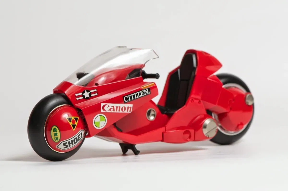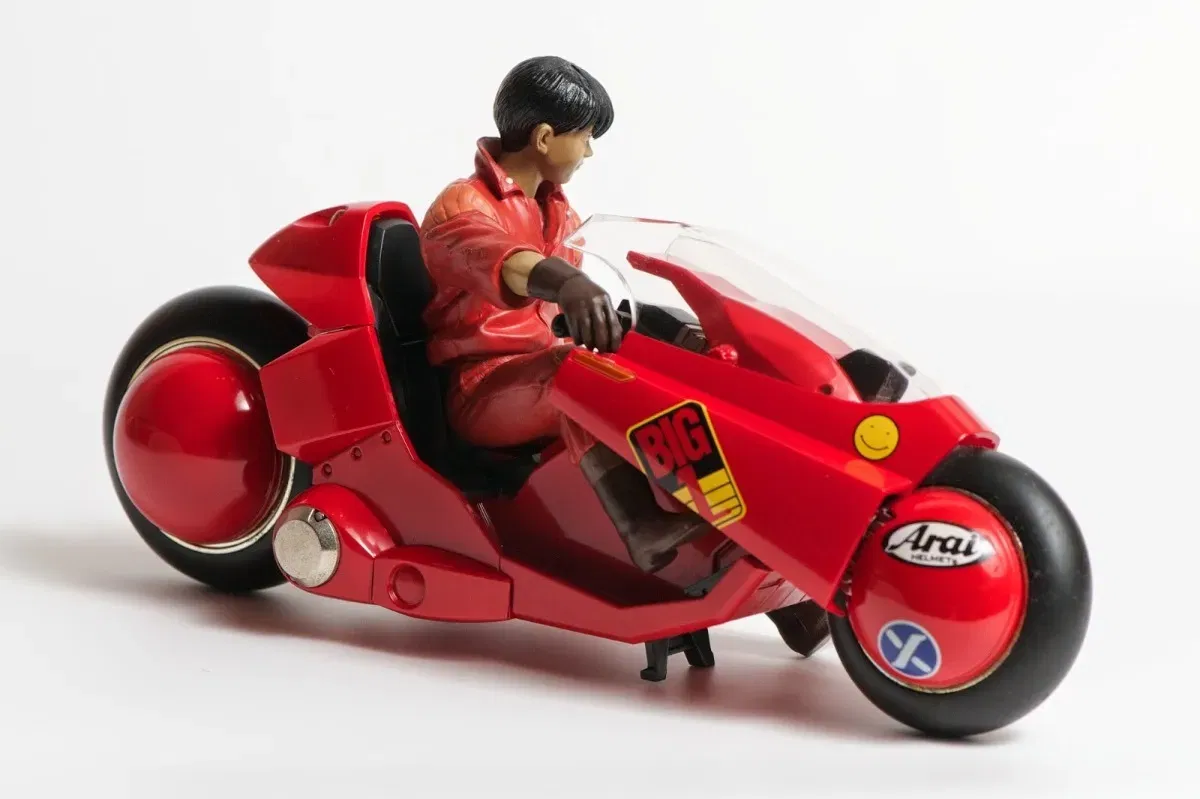 Este impresionante modelo completo de la motocicleta de Kaneda, tal como aparece en la exitosa película "Akira", está hecho de DieCast Metal, ABS y PVC, con un acabado y detalles magníficos. ¡Incluye la figura de Kaneda! La moto viene con parte del carenado desmontado, lo que permite ver la suspensión y otros detalles; puedes montarlo fácilmente (o quitarlo si lo prefieres).