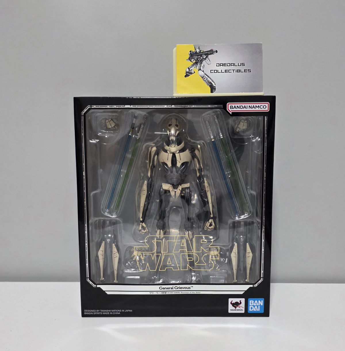 ¡Cuidado! ¡El General Grievous ha urdido un plan para aparecer en la línea de figuras de acción S.H.Figuarts de Bandai! Comandante del poderío militar de la Confederación de Sistemas Independientes, esta impresionante figura viene diseñada con articulación dinámica y magníficos detalles inspirados directamente en la película Star Wars: La Venganza de los Sith. Equipada con su característico diseño de cuatro brazos para blandir los sables de luz de los Jedi caídos, esta astuta y formidable figura será la manera perfecta de ampliar tu colección de Star Wars.