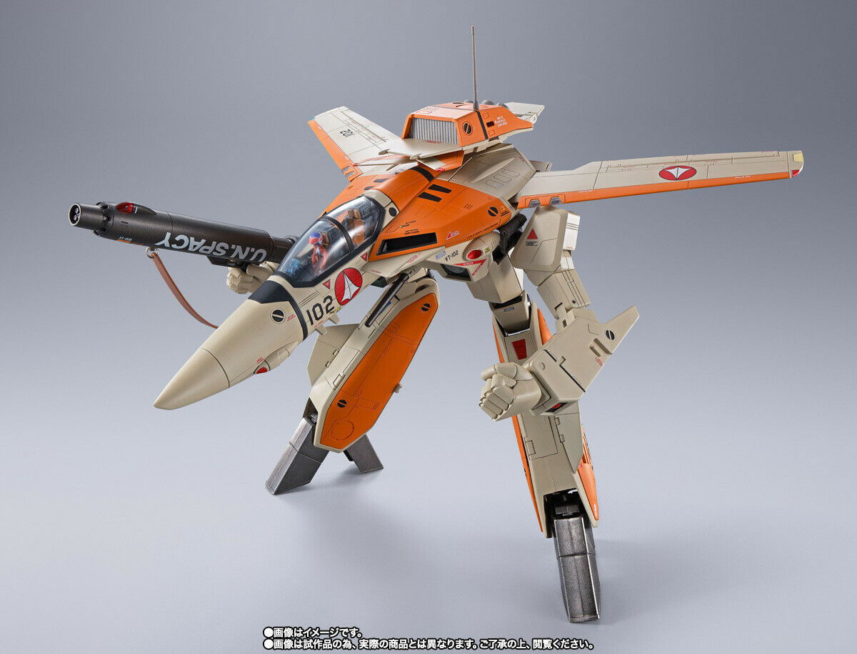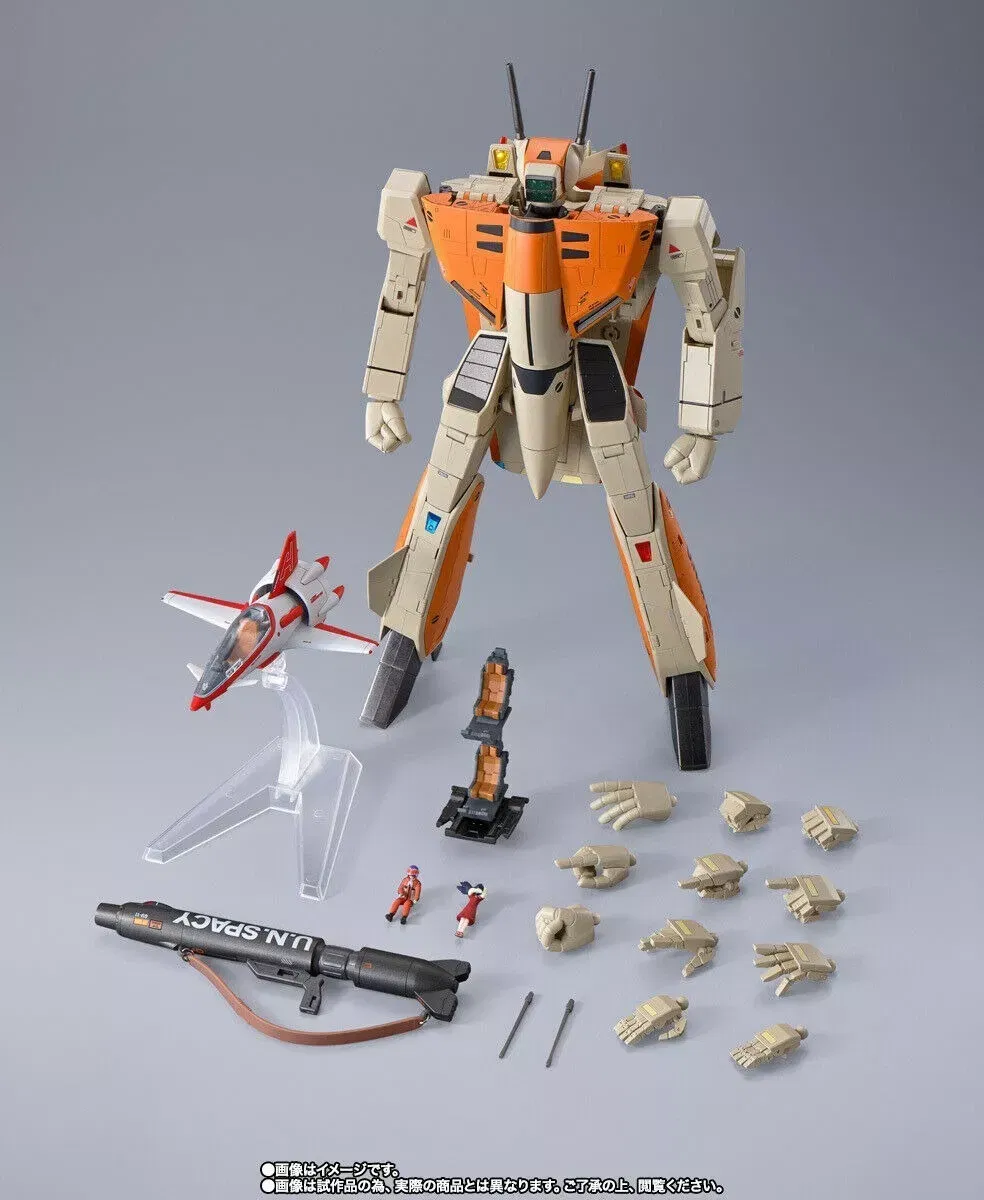 Modelo de la linea DX Chogokin de los VF-1 de Macross/Robotech, primer valkyria piloteada por Hikaru Ichijo o Rick Hunter como se lo conoció acá en Robotech, en la escala mas grande fabricada, 30 cm altura en modo robot, con detalles excelentes y mejores articulaciones que todas las versiones anteriores en escalas mas chicas. Incluye también el Fan Racer, el pequeño avión de acrobacia con el que hizo su primera aparición Hikaru, un lujo para el coleccionista de Macross..!