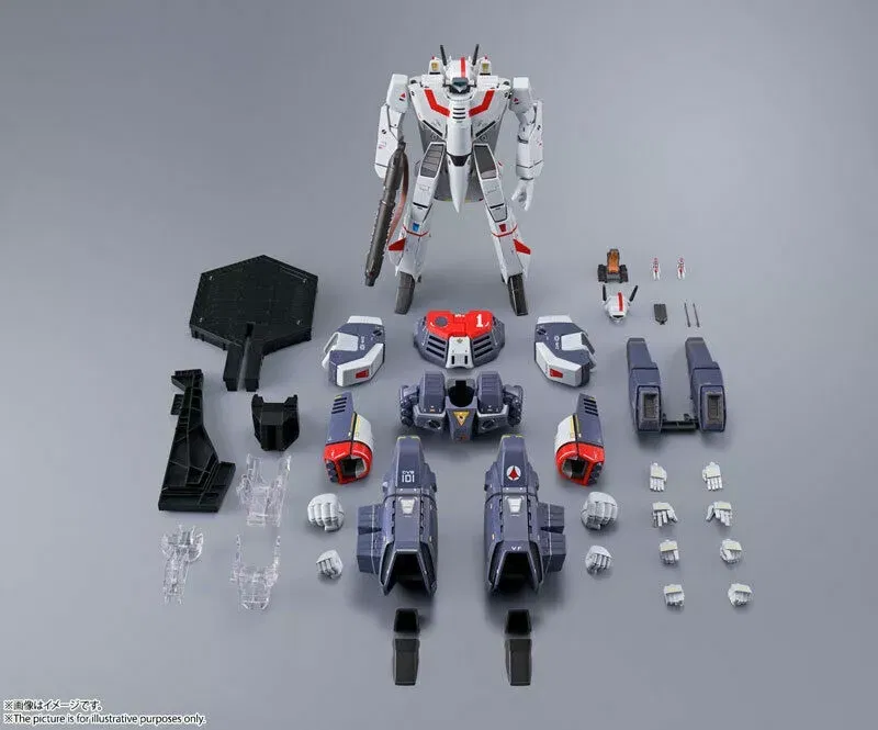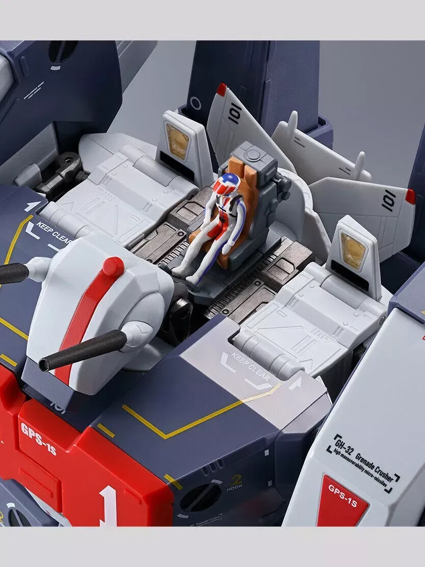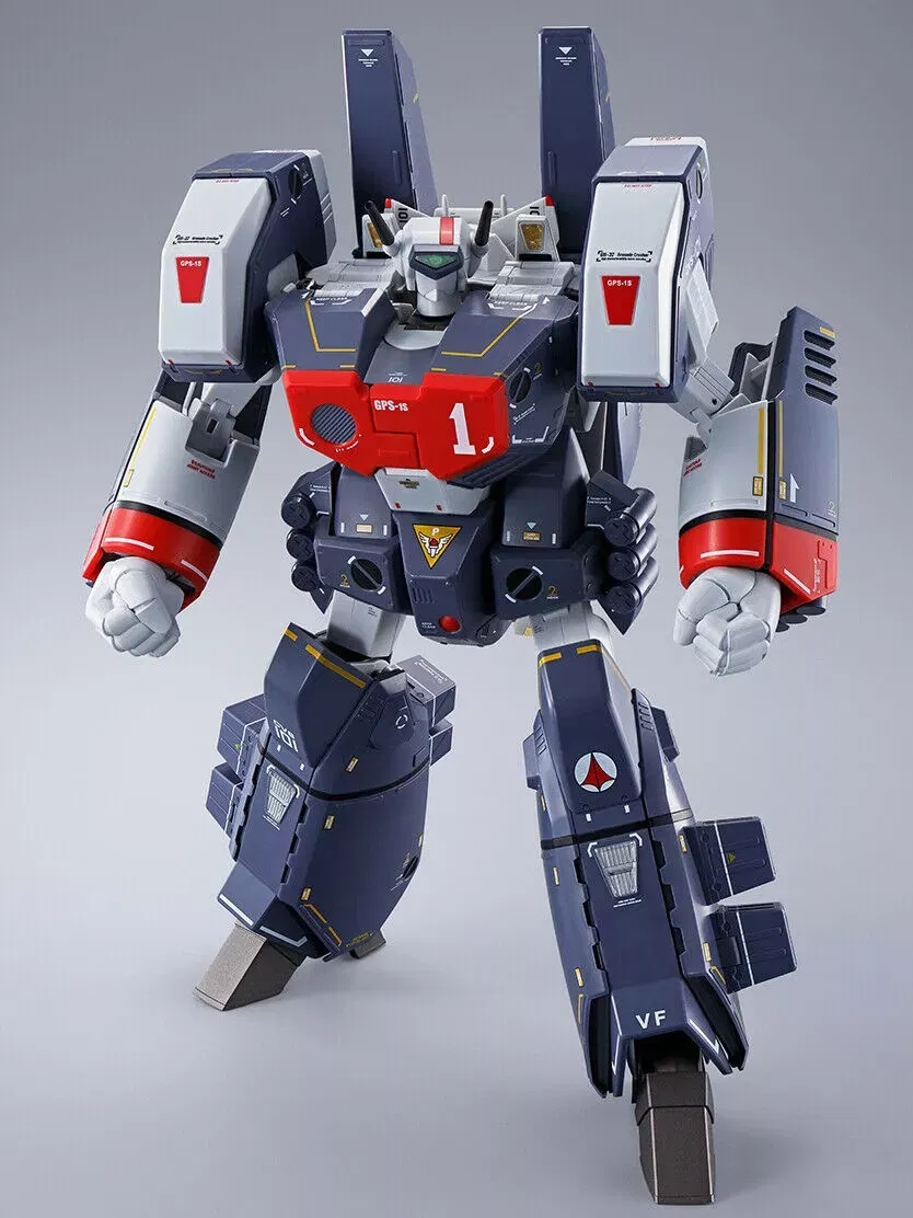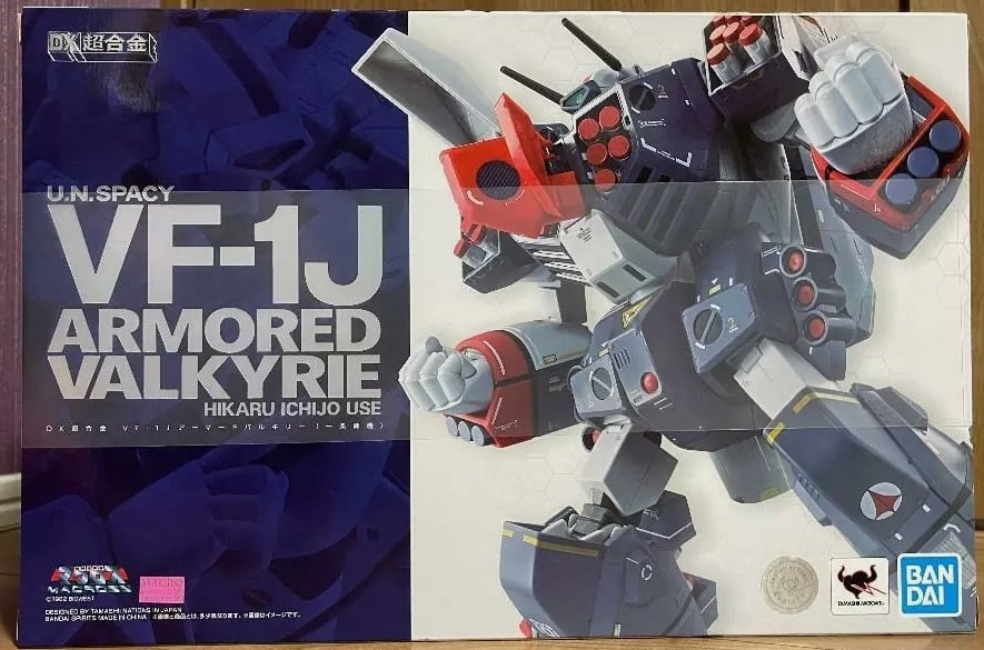 El VF-1J Armored Valkyrie de "Macross" finalmente se une a la línea DX Chogokin de Bandai. El VF de Hikaru Ichijo lo convierte en una figura considerable con una poderosa armadura que se puede quitar y unir; está cargado de marcas realistas, todas impresas con tampografía para mayor precisión y colores vivos. Además de la cabeza normal, también se incluye la cabeza con gafas grises que se ve en el anime. Incluyen seis pares de manos intercambiables, con un par de puños de gran tamaño en un homenaje al arte de la caja y está fabricado con DieCast Metal para mayor durabilidad.