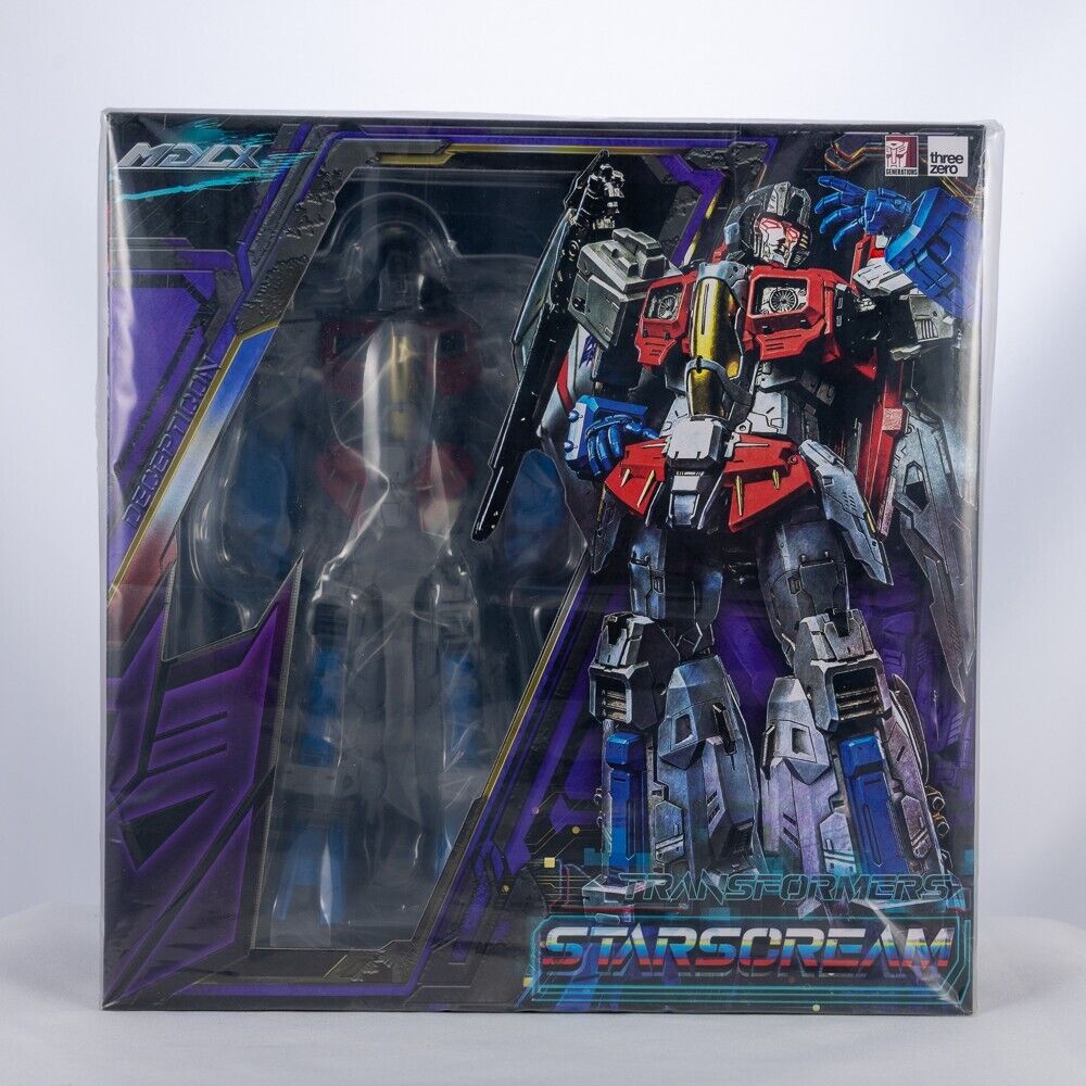 Threezero se enorgullece de anunciar el personaje más nuevo de la serie MDLX, Starscream, el traicionero Decepticon Air Commander y líder de los Seekers. MDLX Starscream mide aproximadamente 7,8" (20 cm) de altura hasta la parte superior de sus alas y está equipado con el exclusivo sistema de marco interno de aleación de zinc fundido a presión y plástico de ingeniería de threezero con más de 50 puntos de articulación.