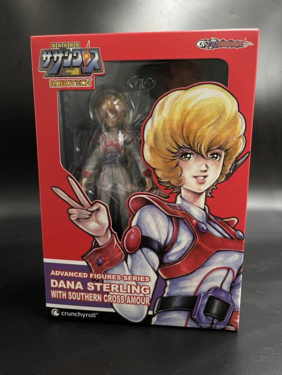 Basada en su aparición en el anime mecánico clásico de los 80, The Super Dimension Cavalry Southern Cross, Dana Sterling está aquí como un par de figuras de acción a escala 1/12