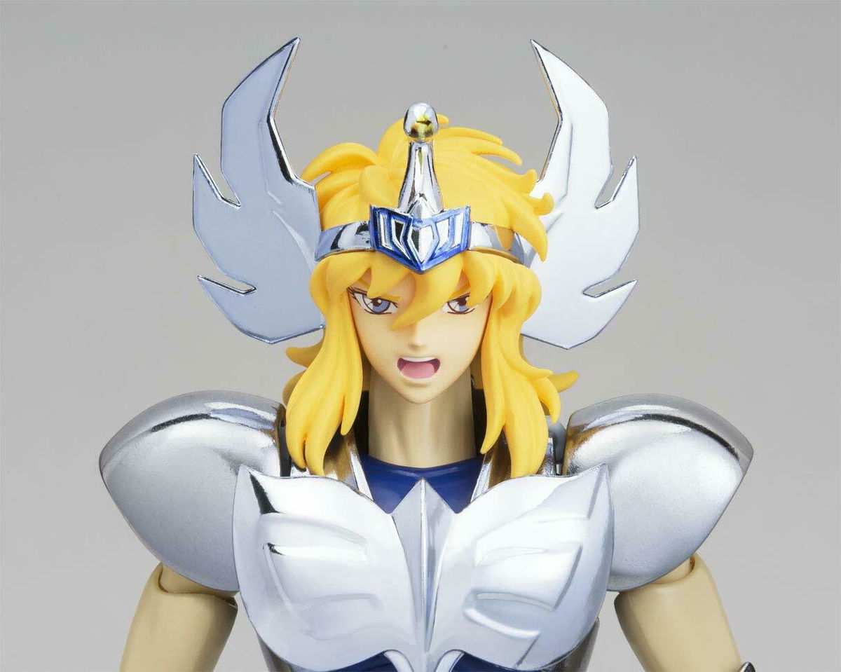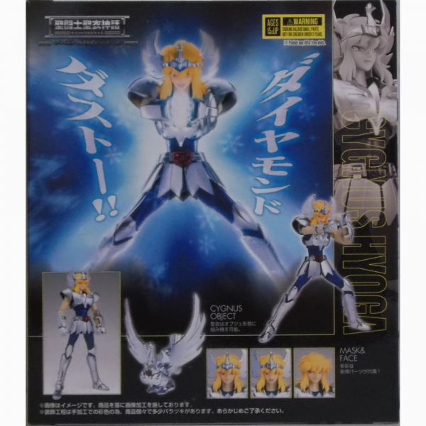 Cygnus Hyoga completa el grupo Initial Bronze Cloth Revival Version de figuras "Saint Seiya" de Bandai. Presenta una cabeza recién esculpida, con tres expresiones faciales intercambiables; como siempre, es increíblemente articulable con una armadura de fundición a presión, y puedes exhibir la armadura en la figura o en el marco del objeto.