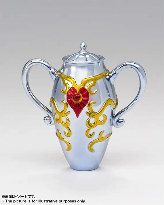 Además de todo lo que incluye la figura normal de Myth Cloth EX Emperador del Mar Poseidón, este Set del Trono Imperial también incluye una base, el jarrón de Atenea, dos expresiones faciales adicionales, una máscara atravesada por una flecha y un lujoso trono.