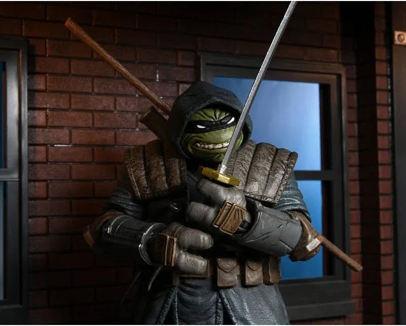 La figura Ultimate The Last Ronin (Armored) de NECA, es una representación a escala de 7 pulgadas (aprox. 17.8 cm) de Michelangelo como el último superviviente en el futuro distópico del cómic de IDW.