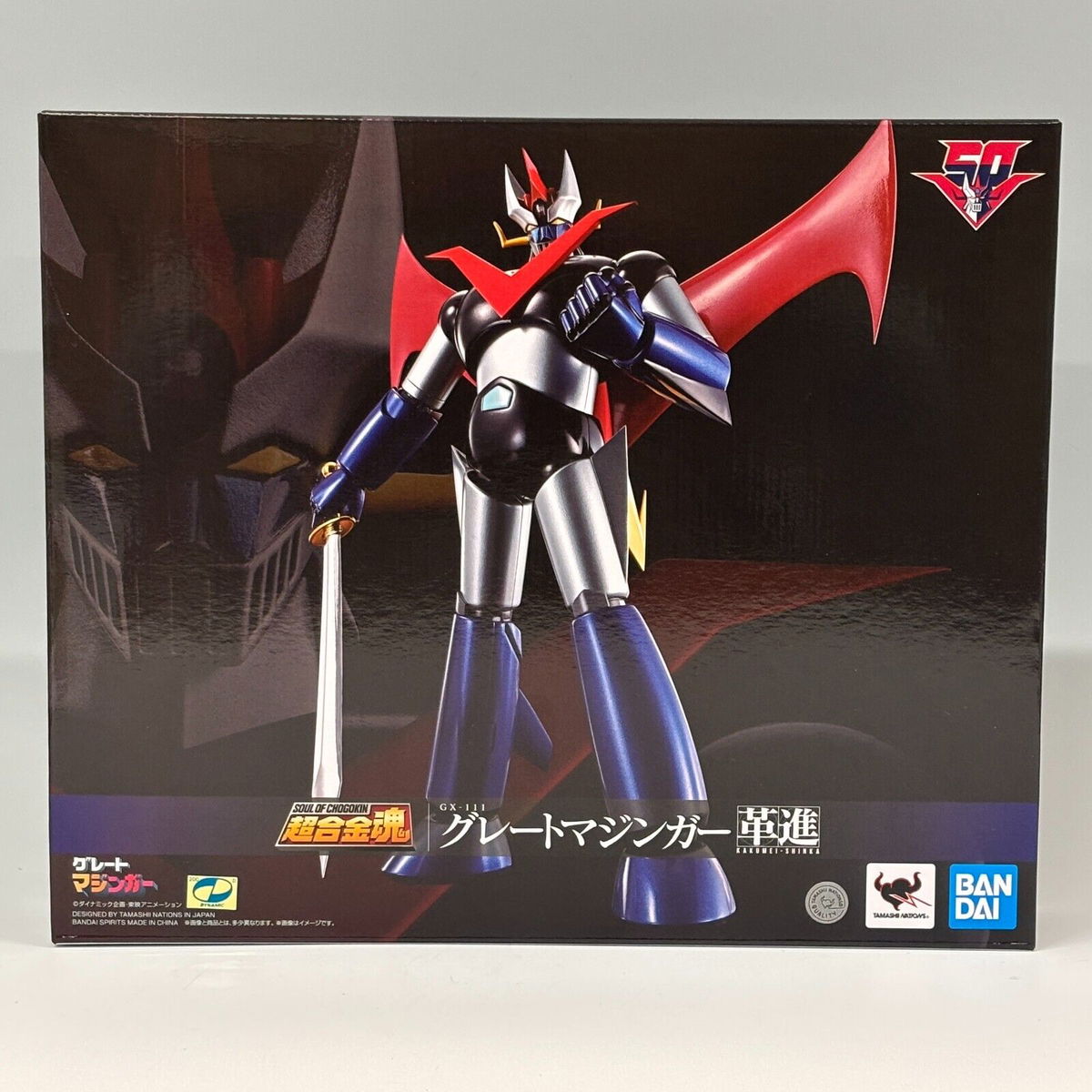 El superrobot aún más poderoso, Gran Mazinger, el "Gran Héroe", ahora está disponible en SOUL OF CHOGOKIN como un artículo de molde completamente nuevo. Para celebrar el 50.° aniversario del "Gran Mazinger", este nuevo Gran Mazinger viene repleto de los innovadores mecanismos y trucos de SOUL OF CHOGOKIN. Con un cuerpo que es aproximadamente 190 mm más alto que MAZINGER Z, está equipado con la estructura de articulación "Kakushin" y varios trucos. Este es el Gran Mazinger definitivo que se lanzará en el 50.° aniversario.