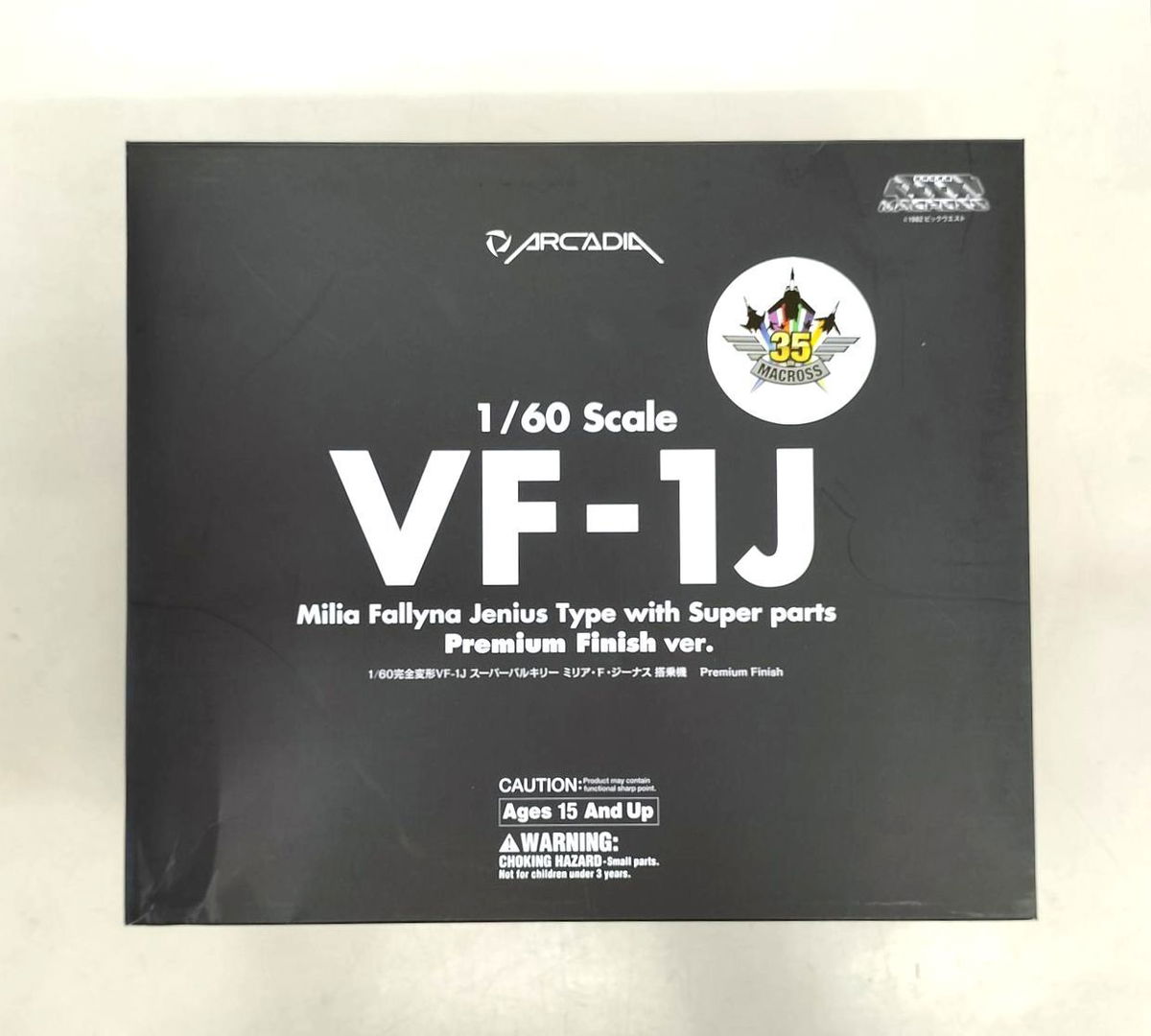 La VF-1J Valkyrie de Milia Fallyna Jenius de "Macross" es totalmente transformable entre sus formas Battroid, Gerwalk y Fighter y está equipada con sus Super Parts para mayor velocidad y maniobrabilidad. Cuenta con piezas de diecaast metal para mayor peso y durabilidad; aproximadamente 24 cm de largo en modo Fighter. Esta versión limitada cuenta con calcomanías tampo preaplicadas para una apariencia más elegante.