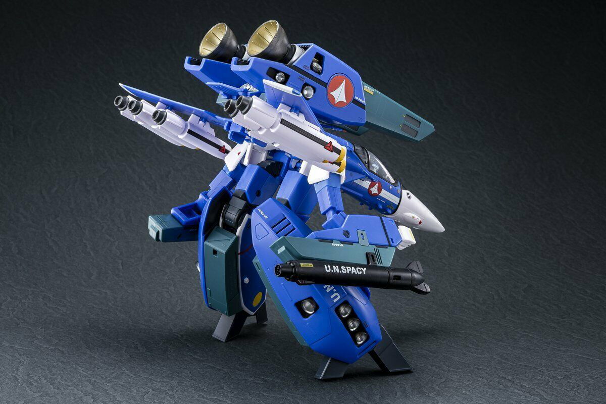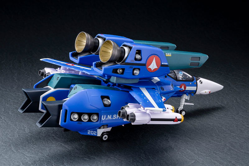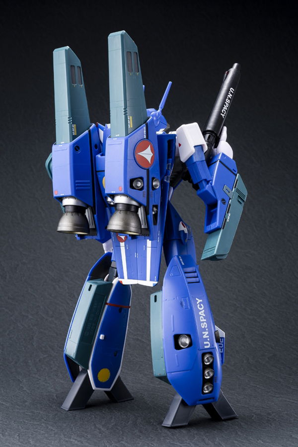 La VF-1J Valkyrie de Maximilian Jenius de "Macross" es totalmente transformable entre sus formas Battroid, Gerwalk y Fighter y está equipada con sus Super Parts para mayor velocidad y maniobrabilidad. Mide aproximadamente 24 cm de largo en forma de Fighter, tiene piezas de diecast metal para mayor peso y durabilidad, e incluye una figura de piloto, un gunpod, misiles y más. Este lanzamiento cuenta con calcomanías tampo preaplicadas para una apariencia más elegante.