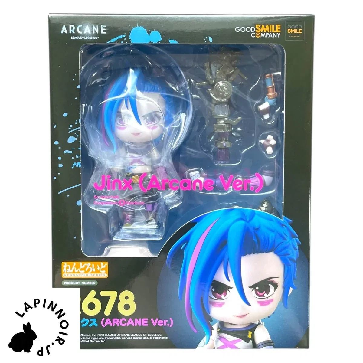 De Arcane, la exitosa serie animada de Netflix basada en el mundialmente famoso videojuego League of Legends, llega la Nendoroid de Jinx Arcane. Esta Nendoroid incluye 3 caras: una burlona, una enloquecida y una seria. Además, incluye piezas adicionales como su lanzacohetes Rhino y una pistola electromagnética. Esta figura es perfecta para cualquier fan de la serie. Asegúrate de añadir esta Nendoroid de Jinx Arcane a tu colección.
