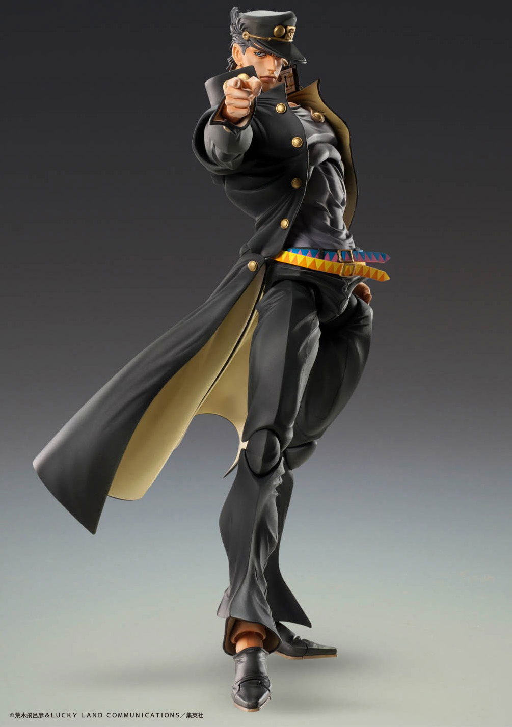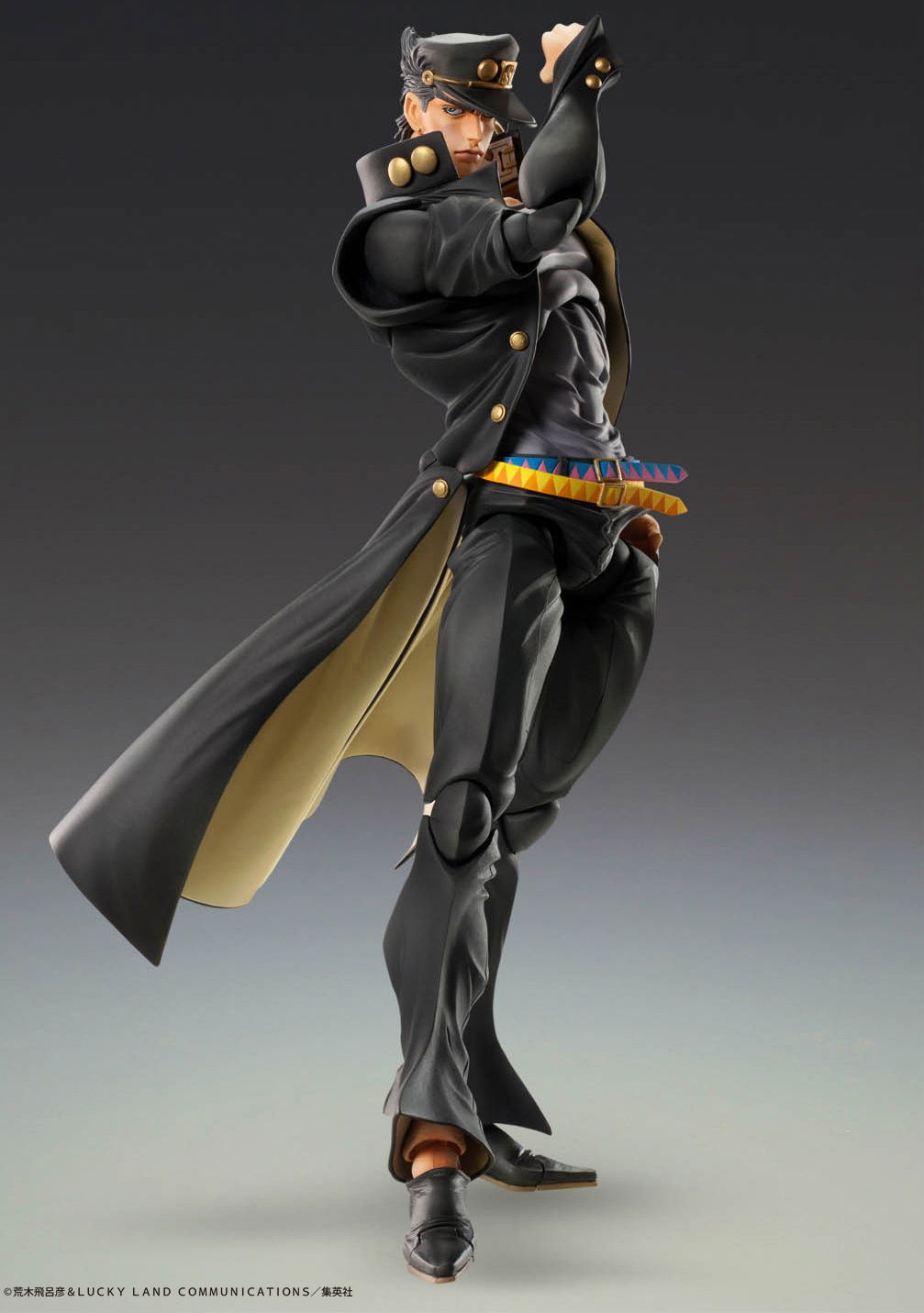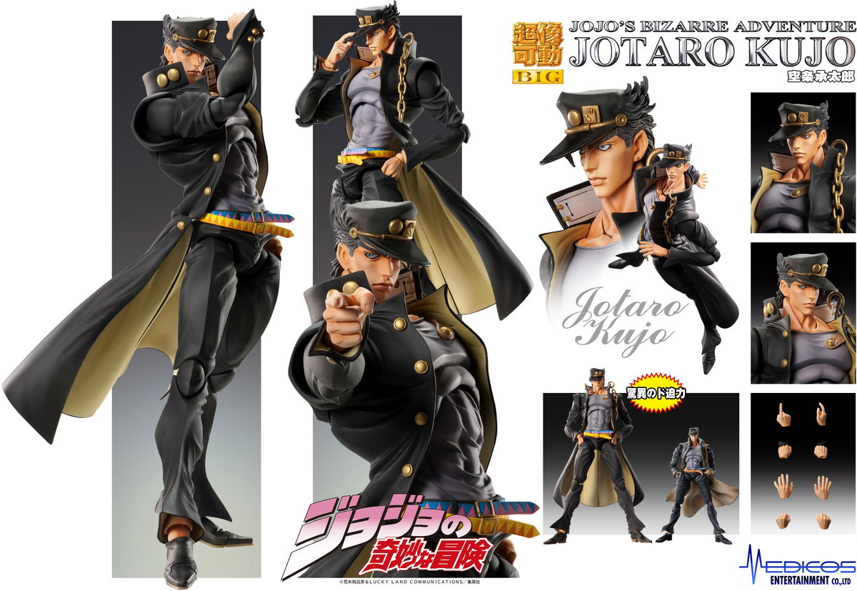 Del tercer capítulo de "JoJo's Bizarre Adventure" viene una estatua de súper acción de Jotaro Kujo, es una figura muy detallada y súper articulada para recrear toda tu acción favorita de JoJo.