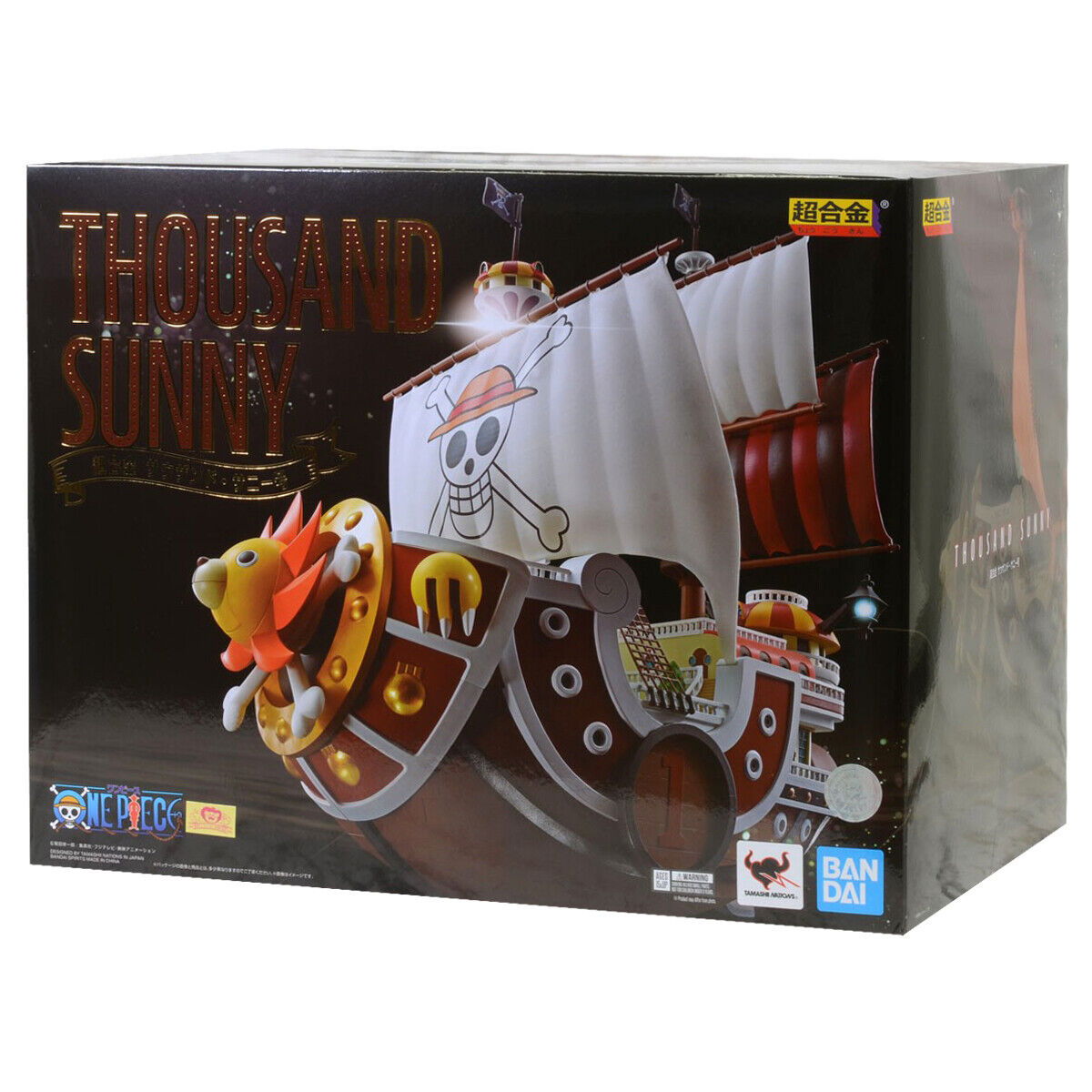 El barco de los Piratas de Sombrero de Paja, Thousand Sunny, se une a la serie Chogokin en una gran escala súper satisfactoria, 38 cm de largo y 24 cm de alto. Este coleccionable definitivo del famoso barco de carraca incorpora un sistema de muelle de soldado giratorio y Gaon Cannon cuenta con cinco minimáquinas y paredes laterales extraíbles para revelar los espacios interiores. Es una representación única que los fanáticos no querrán perderse. Las partes de los huesos cruzados actúan como un interruptor para abrir el cañón Gaon y el Chicken Voyage gira.