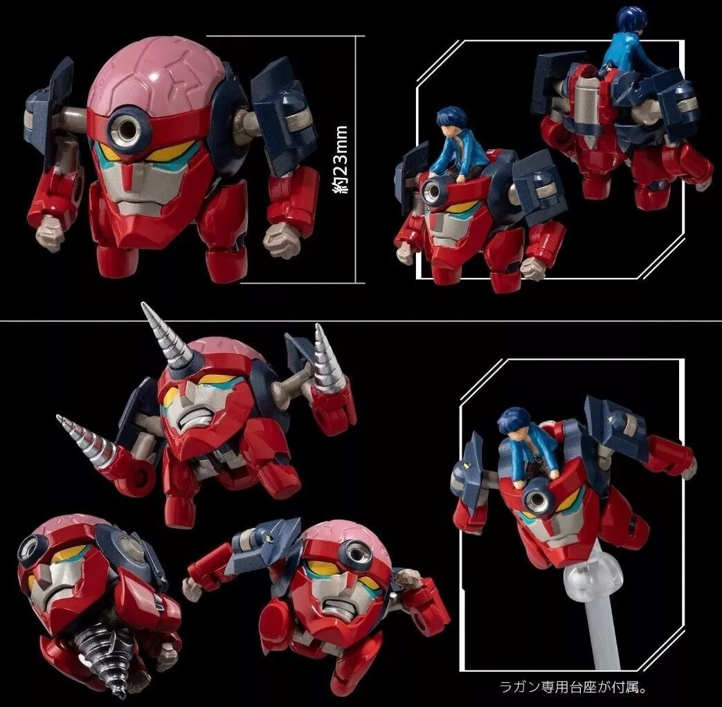 De la serie de anime Gurren Lagann llega la figura RIOBOT del Gurren-Lagann combinado. La figura mide 21 cm de alto y presenta varias armas y accesorios intercambiables para mostrar Gurren-Lagann en varias configuraciones.