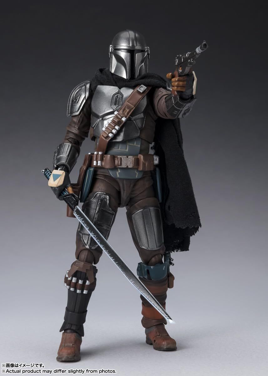 El Mandalorian y su joven amigo Grogu de "The Mandalorian" regresan a la línea de figuras de acción "S.H.Figuarts" de Bandai. Estas figuras están completamente recién moldeadas, con las proporciones de cada personaje reproducidas nuevamente hasta las arrugas de su ropa. Las articulaciones tienen una nueva estructura para que el Darksaber se pueda sostener con ambas manos; La capa también tiene un cable incorporado para posar realista. También se incluyen un cochecito flotante de nuevo diseño para Grogu y un Darksaber. La cara y la parte inferior del cuerpo de Grogu se pueden reemplazar para aumentar la expresividad y sus orejas también pueden moverse hacia arriba y hacia abajo. También se incluye una botella de agua que se recogió de un manantial en las minas de Mandalore.