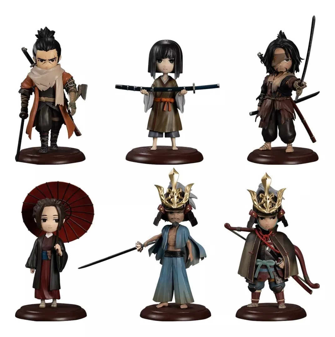 Esta línea de figuras increíblemente lindas de "estilo deformado" de tus personajes favoritos de "Sekiro: Shadows Die Twice" es el complemento perfecto para tu colección. Cada figura viene con su propia base. Hay seis personajes diferentes y obtendrás uno de cada uno en la caja.