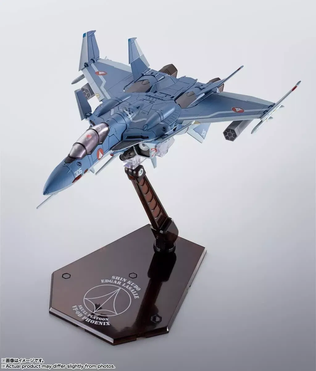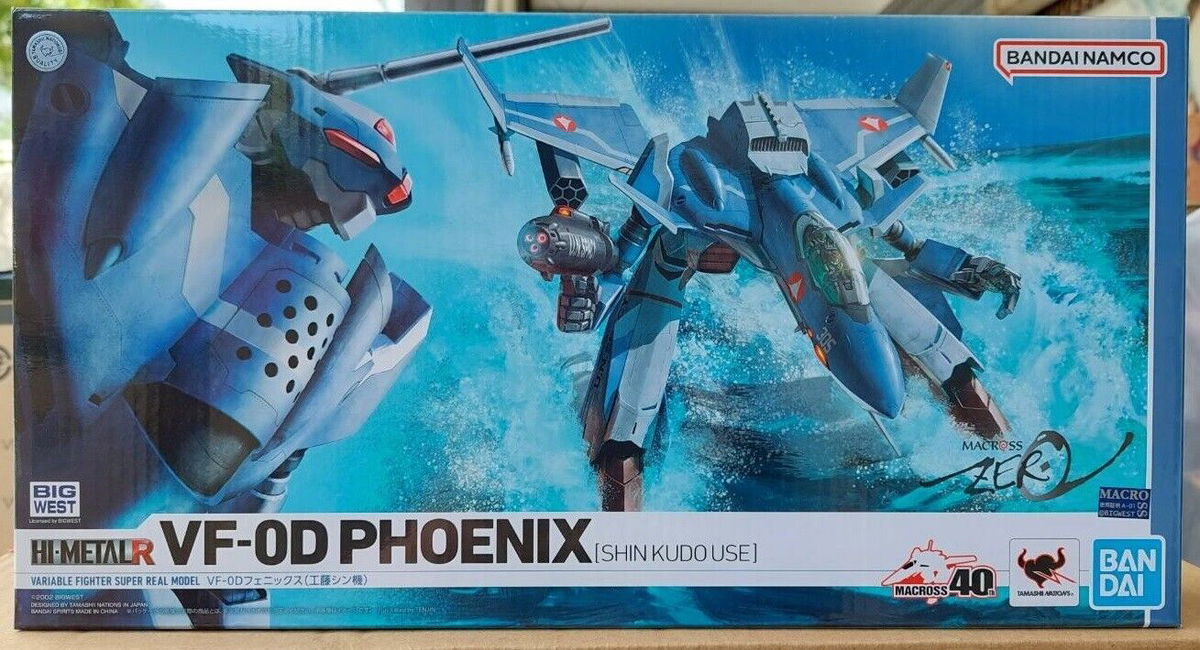 El VF-0D Phoenix de Shin Kudo y Edgar LaSalle, de Macross Zero, se une a la serie Hi-Metal R. Con un nuevo diseño de cabeza y cabina de doble asiento, además de los distintivos canards y alas delta recortadas de la versión D Valkyrie.